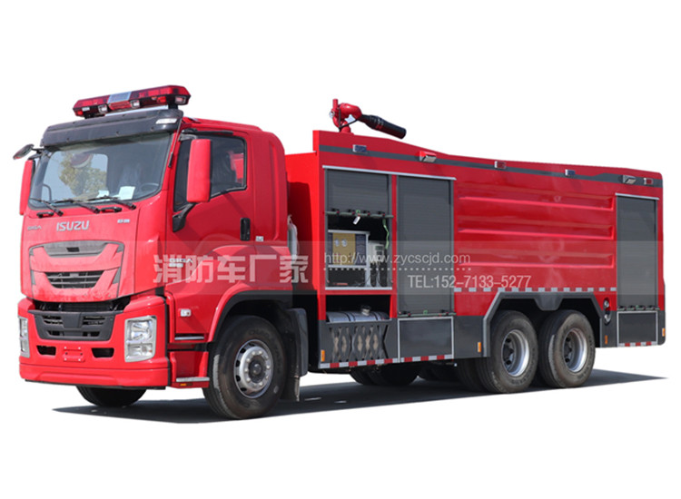 國五重汽消防車車型,載液量與國四相同,水罐為8立方,泡沫為6+2立方,配置上基本保持一致不變。